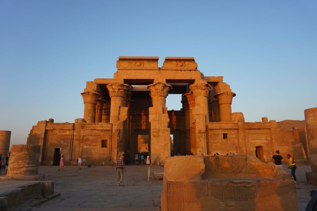 Hoy es día de navegación, así que lo pasamos en cubierta tomando el sol y en la mini piscina. El barco tiene un montón de españoles y hablamos con algunos de ellos en la piscina, hay vascos, navarros y andaluces. Comemos en el buffet y volvemos a la piscina. A las 16:30 tomamos té y a las 17:00 paramos para ver el Templo de Commombo. Está peor conservado y es algo diferente porque son dos templos juntos, que mantienen siempre la simetría egipcia. Este tiene una cosa curiosa que es un pozo donde recogían agua.
