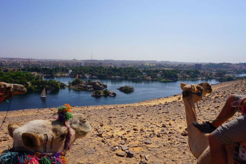 Después nos lleva al otro lado del Nilo para hacer un paseo en camello de 45 min hasta el monasterio de Santa Catalina. Esto se lo habían recomendado a Miguel, pero no lo hacemos exactamente igual, de hecho las ruinas las vemos de lejos. Mi camella es un pelín rebelde y yo no me siento muy cómoda.