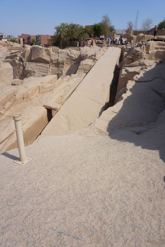 Ya somos libres. Esta etapa del viaje nos hemos sentido excesivamente controlados por la agencia con la que contratamos el crucero, el guía y las excursiones. Hoy nos levantamos con calma y nos vamos andando hasta una cantera que hay en Asuán que tiene un obelisco inacabado. Tardamos algo más de media hora en llegar y luego una hora en visitarlo. No es gran cosa, pero merece la pena verlo. La cantera no es muy grande pero impresiona ver cómo sacaban la piedra y ver el enorme obelisco sin terminar. Te preguntas: ¿y cómo lo iban a sacar de aquí?