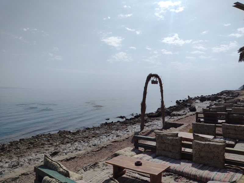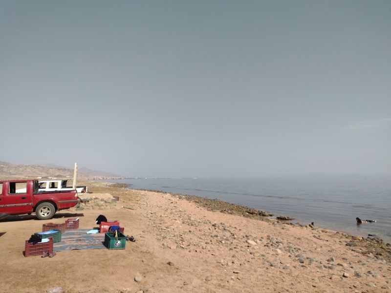 En Dahab hay pocas playas y las que hay son pedregosas, por lo que es conveniente llevar escarpines, y sobre todo fundamental gafas y snorkel porque en cualquier lugar puedes disfrutar de las maravillas del mar rojo.