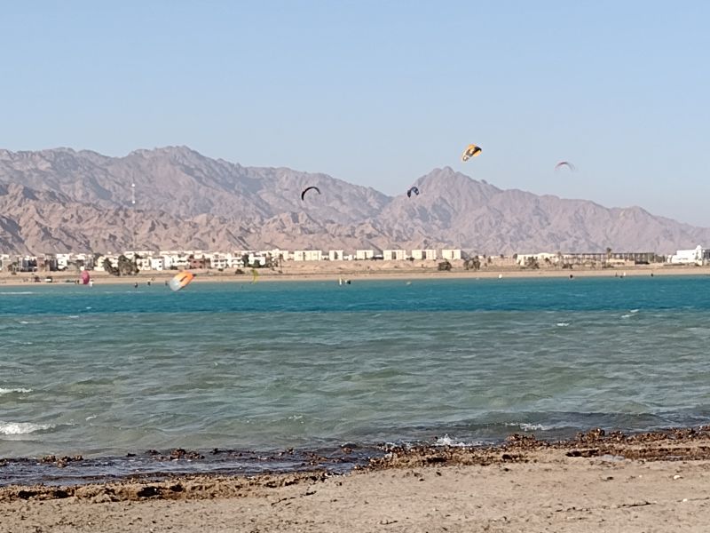 Último día en este paraíso. Desayunamos con tranquilidad y volvemos un rato al hotel. Después vamos a snorkelear enfrente del hotel. Cogemos unas hamacas en el Bar Sababa y estamos allí hasta la 13:00 o las 14:00.Luego nos vamos andando hasta el Lago Azul donde la gente aprende a hacer sky surf. Lo cruzamos andando ya que no cubre mucho. Está lleno de gente practicando Sky surf o windsurf.